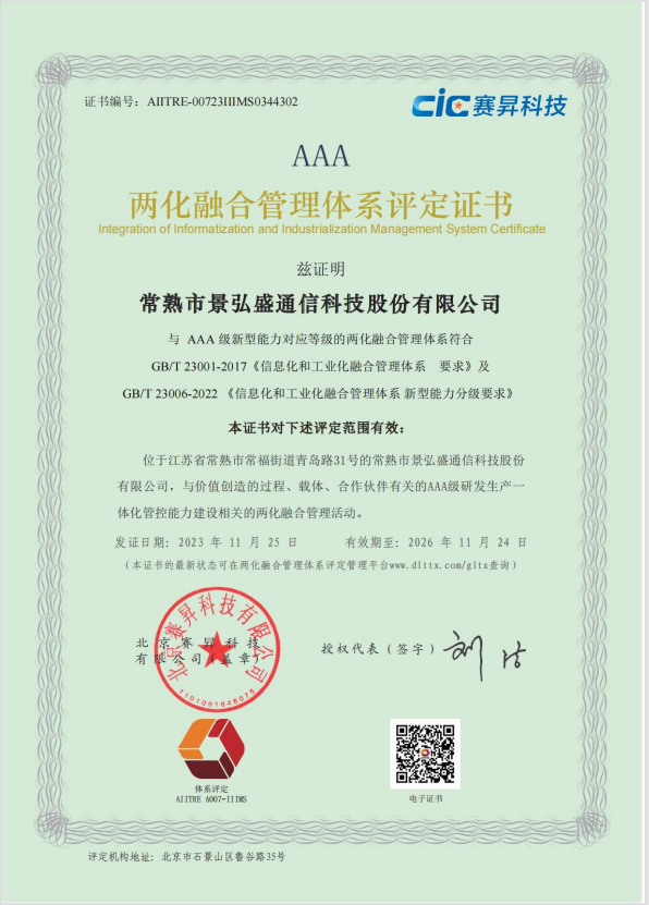 常熟市景弘盛通信科技股份有限公司成立于2006年8月,多年積累沉淀,跨越發(fā)展,目前公司擁有員工近450人,各項(xiàng)專利數(shù)十項(xiàng),注冊(cè)資本1.229億人民幣。公司目前擁有員工近450人,各項(xiàng)專利數(shù)十項(xiàng),注冊(cè)資本1.229億人民幣,成為Apple、Intel、HP、Dell、Google、聯(lián)想、華為、中興、愛(ài)立信、Philips、阿特斯、特斯拉、上汽、SAIC Motor,福汽、北汽、菲尼克斯、安費(fèi)諾、泰科等世界知名企業(yè)的重要供應(yīng)商。公司在新工廠籌建企業(yè)內(nèi)部大數(shù)據(jù)中心,建設(shè)基于工業(yè)物聯(lián)網(wǎng)的“智能制造”項(xiàng)目,利用大數(shù)據(jù)管理實(shí)現(xiàn)智能化管理的高科技公司,并加強(qiáng)人才的培養(yǎng)和招聘,引進(jìn)了國(guó)際尖端人才,以及面向未來(lái)...更多>>